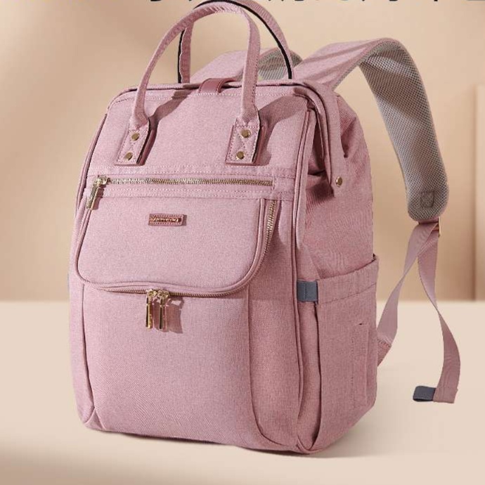 パステルピンクの優しいカラーが魅力の使いやすいマザーズリュックです。