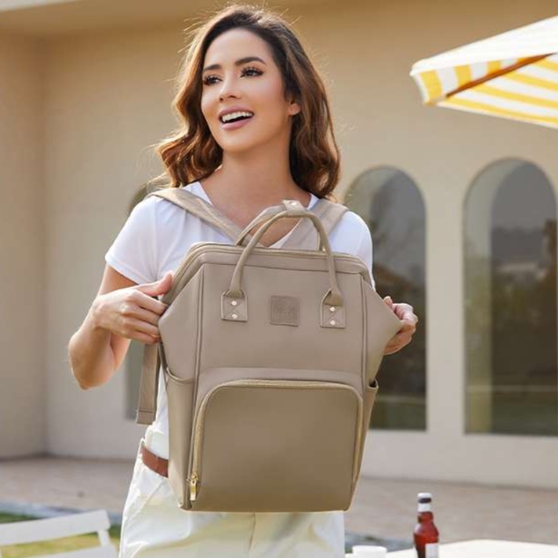 上品ベージュの多機能マザーズバック セレブママ御用達リュックタイプ