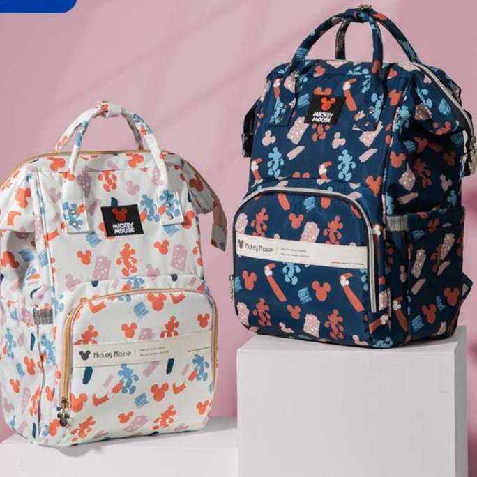 大容量のリュック型マザーズバッグは、かわいいミッキーやミニーのデザインが魅力。おしゃれな見た目に加え、機能性も重視。多彩なポケットで収納力が高く、必要なアイテムをすぐに取り出せる便利さが嬉しい。背負いやすい設計で、育児中のお出かけをサポートする理想的なアイテム。