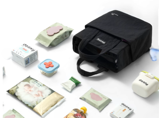 防水素材の高耐久マザーズバッグ、12区画でベビー用品をすっきり整理。