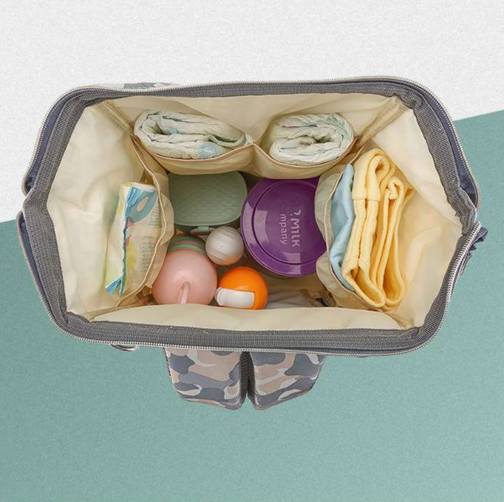 おしゃれな迷彩柄のリュック型マザーズバッグ。大容量の収納スペースを備え、外出時の荷物をスマートに整理可能。赤ちゃんとのお出かけにもぴったりな機能性を持ちながら、スタイリッシュなデザインが魅力。背負いやすさも考慮されており、快適な使い心地を実現。デイリー使いにも適した一品。