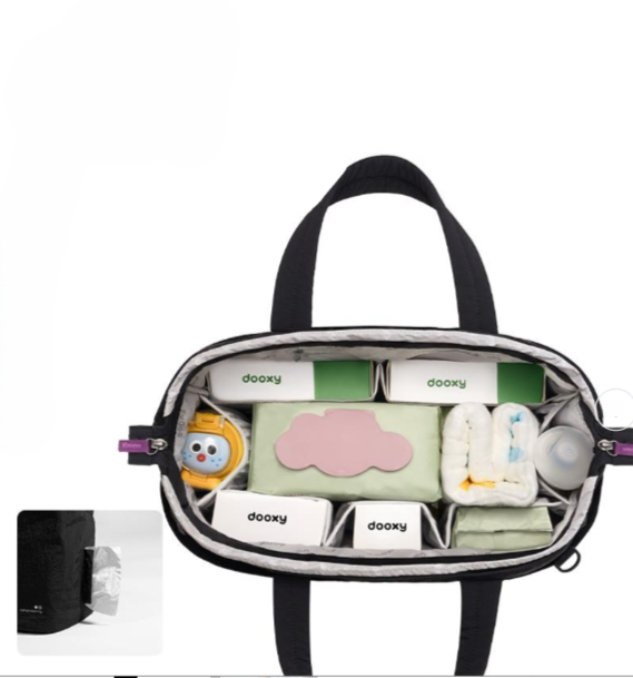 内部の仕切りが充実しており、育児用品やデイリー用品をすっきり整理して収納可能