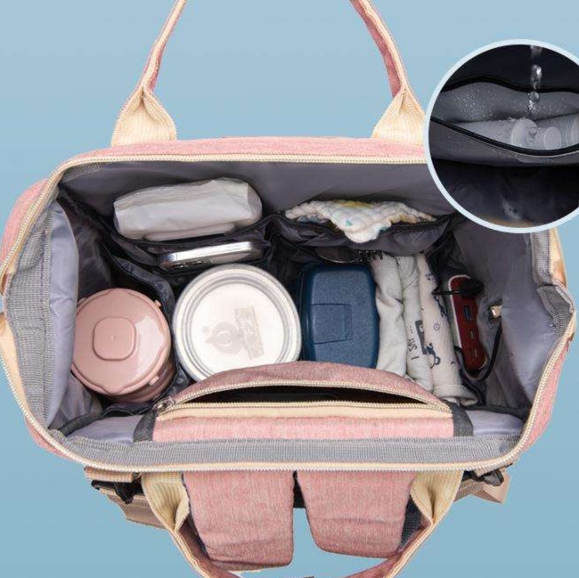 オムツ替えや授乳に必要な荷物がすっきり収納でき、背負いやすい構造