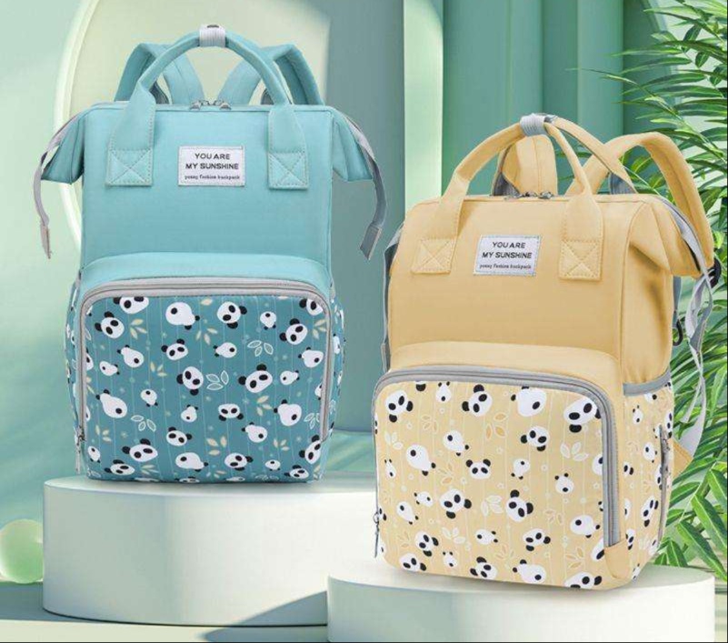 子育てを楽しむママのためのリュック型マザーズバッグ。たっぷり収納できるスペースに、可愛らしいパンダ柄ポケットがアクセント。防水素材を使用し、汚れを気にせず使えるのが魅力。授乳グッズやおむつをすっきり整理でき、実用性も抜群。お出かけがもっと楽しくなるアイテムです。