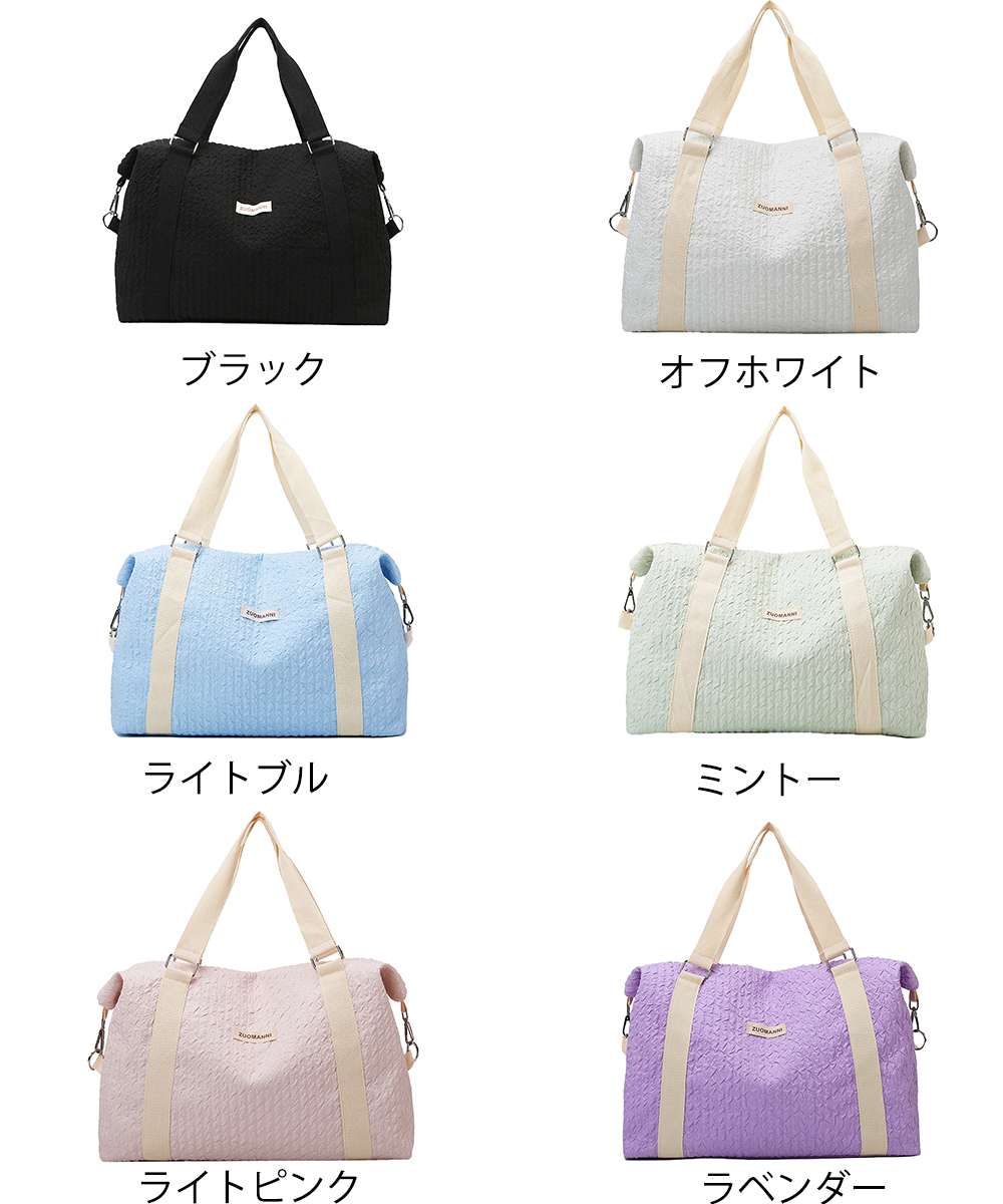 素材:ナイロン+ポリエステル カラー:ブラック/ライトブルー/ラベンダー/オフホワイト/ミント サイズ: 高さ:約35cm 上横幅:約53cm 底横幅:約43cm マチ:約15cm 持ち手高さ:約17cm 持ち手長さ:約53cm(調節不可、取り外し不可) ショルダー:約60-110cm(調節可、取り外し可) ■収納について A4対応(22×31cm):〇・iPadmini対応(19.6×13.5×0.7cm):〇・長財布(10×20cm):〇 二つ折り財布:〇・キーケース:〇・ペットボトル横向き(500ml):〇・ペットボトル縦向き(500ml):〇 重さ:約441g 裏地:あり 内ポケット:あり