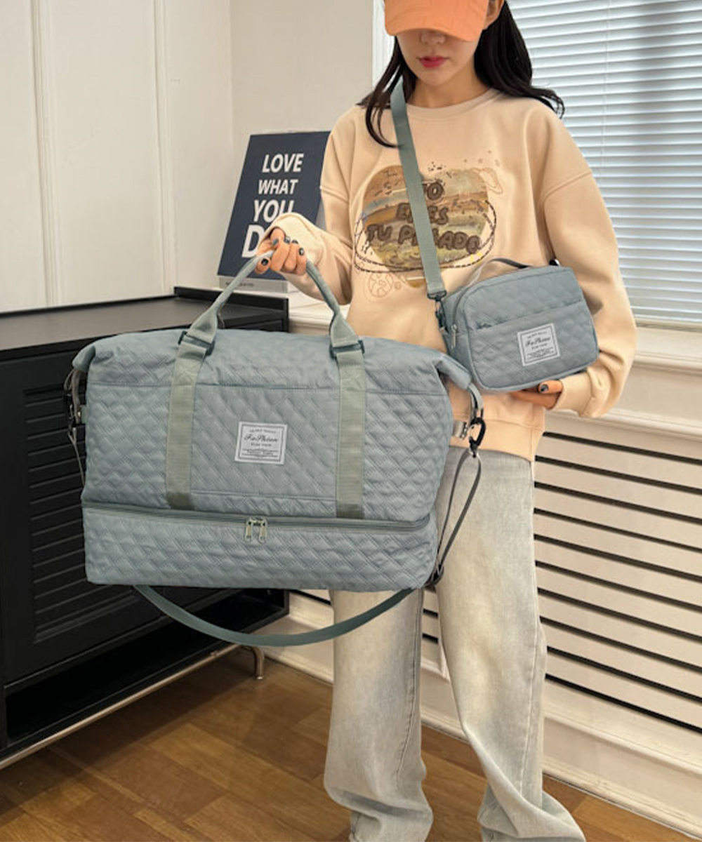 ふんわり手触りのキルティング生地を使用したボストンバッグとショルダーバッグの二点組み。
