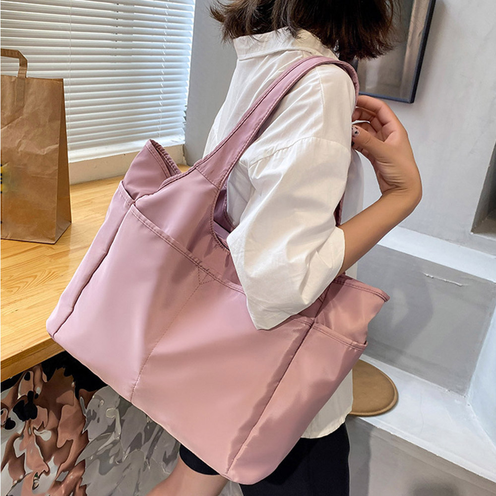丈夫なナイロン素材で作られた大容量トートバッグです。
