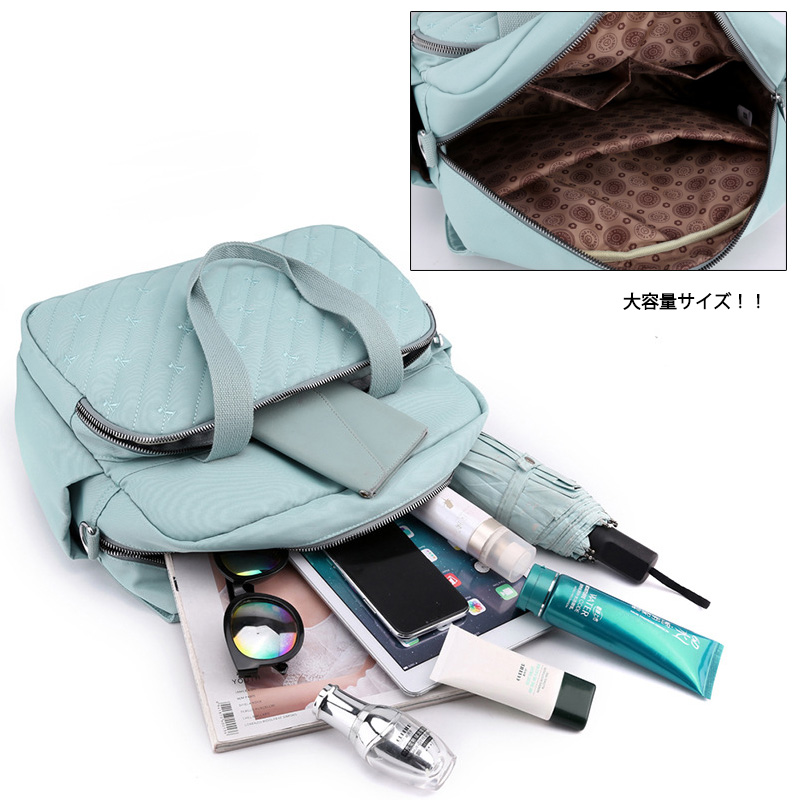 ■コメント ・550gでとっても軽量なのに大容量サイズ。 ・3way使えて機能性も抜群。 ・ベーシックなデザインで、カジュアルなパンツコーデから、可愛いワンピーススタイルなど、色んなコーデに合わせやすい。 ・大容量サイズ、iPadも入る。 ※5点以上~ご注文の場合、より『お得』に!是非ご活用ください。 ■サイズ(約cm) 横約19cm×縦約34cm×高さ約41cm 620g ■カラー 黒、スカイブルー、ライトパープル、ピンク、グレー、ワインレッド、ネイビー ■素材 ナイロン ■裏地 あり ■内ポケット あり