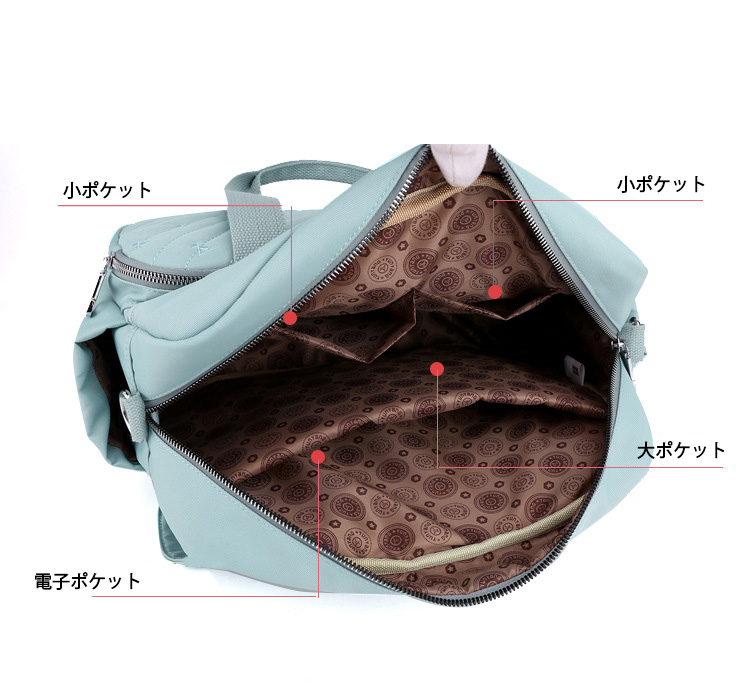 リュック、ショルダーバッグ、手提げの三通りで使える便利な設計。