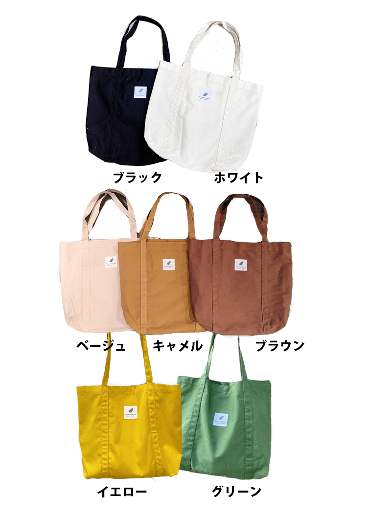 ■サイズ(約cm) 幅43cm、高さ36cm ■カラー ブラック、ホワイト、ベージュ、キャメル、ブラウン、イエロー、グリーン ■素材 コットン ■裏地 なし ■内ポケット あり